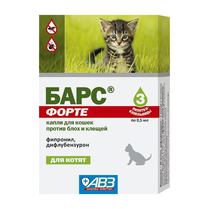 Bars Forte drops for cats against fleas and ticks pipette 3 pcs. (Fipronil, diflubenzuron) missouri in pharmacy online. Cheap price, instruction, side effects, dosage. Bars Forte drops for cats against fleas and ticks pipette 3 pcs. - Sale. PayPal accept. Free shipping missouri. Fast international shipping.