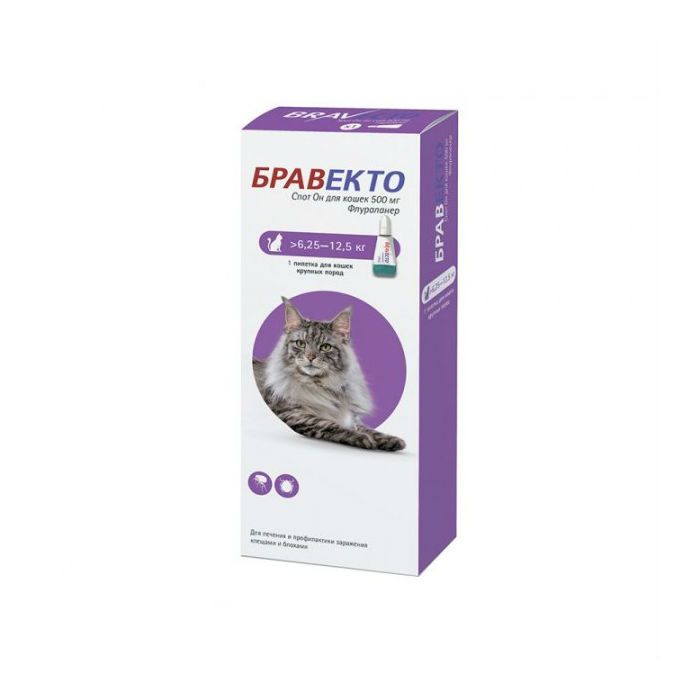 Bravecto Spot He drops at the withers for cats 6, 25-12.5 kg 500 mg (BET) (Fluralaner)