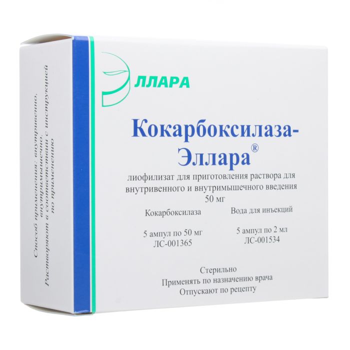 Lyophilisate for preparation of solution for intravenous and intramuscular injection of 50 mg in neutral glass ampoules. Buy Cocarboxylase-Ellara lyophilisate for solution for infusion ampoules 5 pcs. pack (kokarboksilaza) in missouri free shipping. Fast international shipping USA, AU, EU, UK and others.